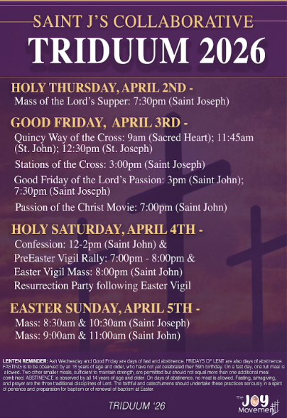 Weekly BulletinForgot to grab one at Mass? Check out our online bulletin here! The weekly bulletin is always the most up-to-date source for everything at St. J's!FacebookFollow us on Facebook for the latest updates!